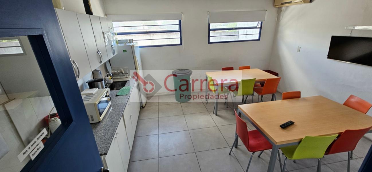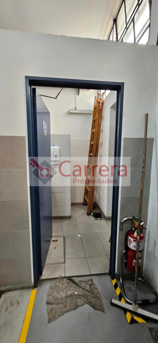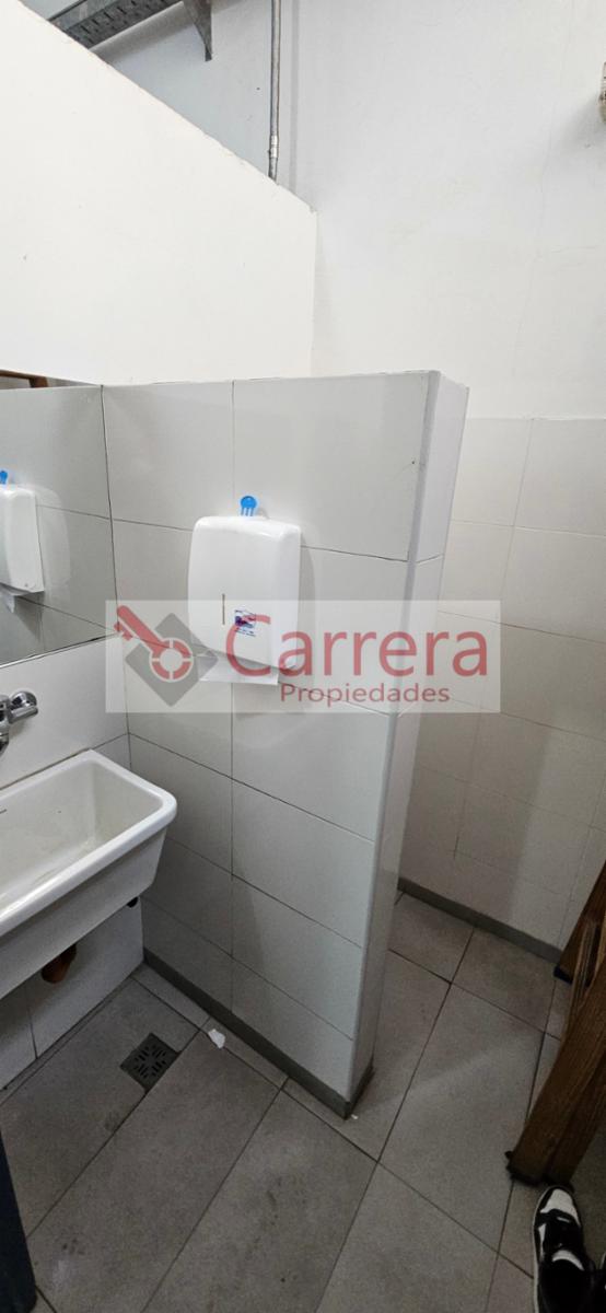 En planta baja: Acceso por persiana de enrrollar 2,40mts x 2,40 mts (no camion). Acceso por puerta de seguridad con "jaula". Oficina recepcion, pecera armada en durlock, neto operativo libre 8,66 x 20mts a la fecha. Baños, vestuarios.