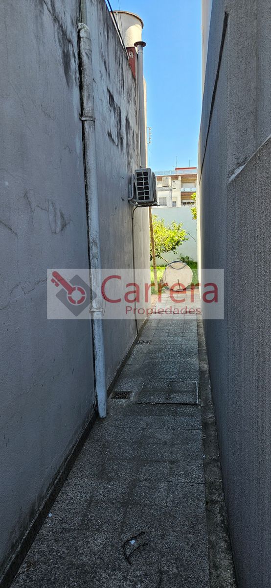 Casa de 3 ambientes, jardin a la calle, living comedor, 2 dormitorios, baño, cocina comedor, fondo libre y acceso a terraza. Posee pasillo lateral de acceso. Superficie cubierta 90m2.